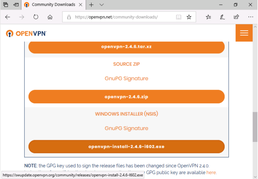 1. Vaya a OpenVPN.net para descargar la última versión. Tenga en cuenta que los instaladores de OpenVPN 2.4 no funcionarán en Windows XP o versiones anteriores de Windows.